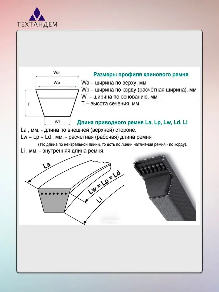 Описание: Клиновой ремень А-980 предназначен для приводов станков, промышленных установок, сельскохозяйственных машин, вентиляционного оборудования, компрессоров.. Характеристики: -передаваемая мощность: до 80 кВт; -допустимая линейная скорость: до 30 м/с; -Расчетная длина ремня: 980 мм -Длина внешняя: 1000 мм -Длина внутренняя: 950 мм -ширина ремня: 13 мм; -высота ремня: 8 мм; -Угол клина: 40°; Особенности: -электропроводность согласно стандарту ISO 1813; -рабочая температура: от -30 °С до +60 °С; -высокая мощность; -относительная устойчивость к маслам.